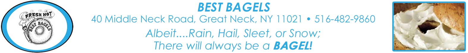 Neck, New York has been the hallmark for bagels, mini-bagels, and bialys; as well as other baked goods, for thirty-six years. Why? All baked goods are fresh, hand-rolled and baked right on the premises. In addition, Best Bagels offers a wide assortment of appetizers and prepared food.